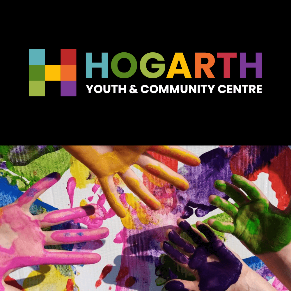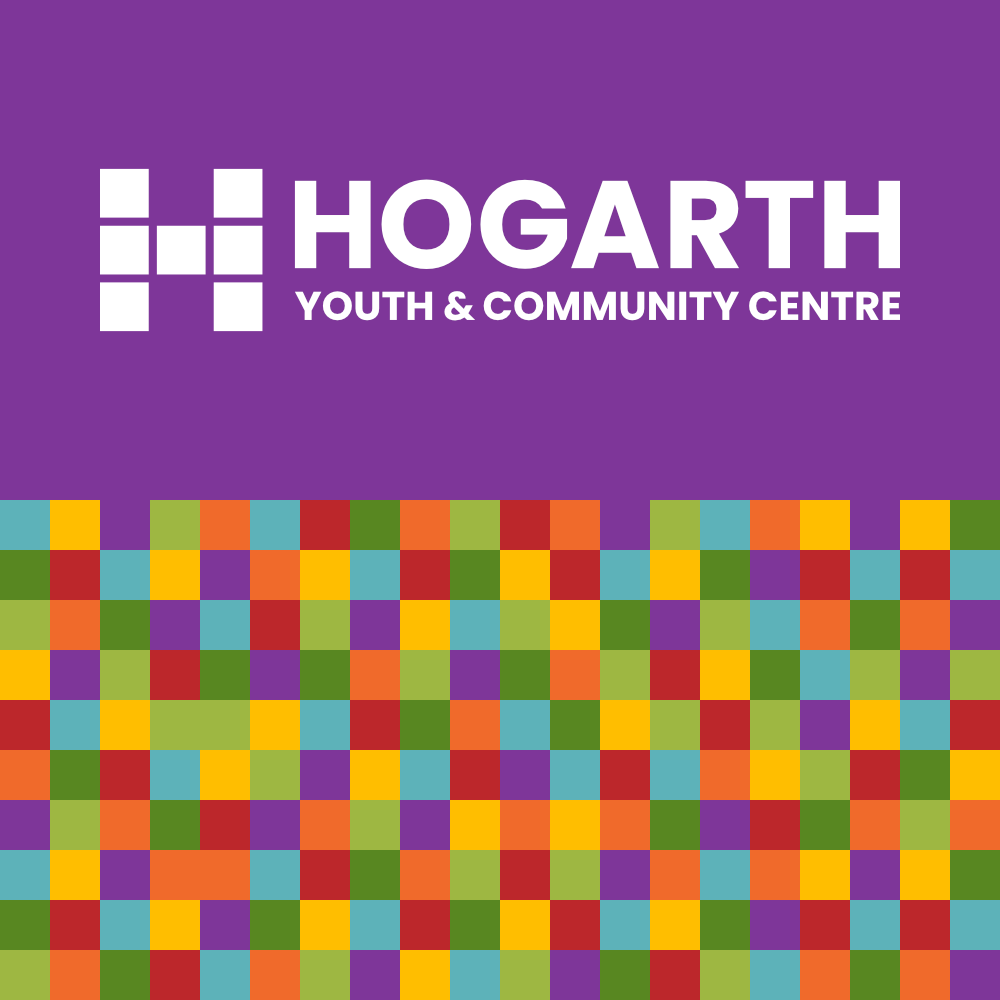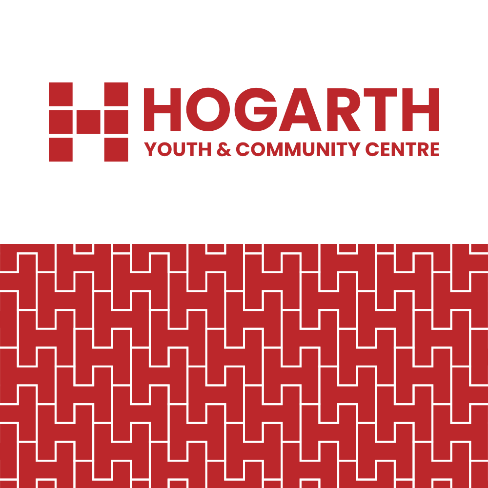 The Hogarth Youth & Community Centre. A Victorian School now used as a vibrant hub for the community in the heart of Chiswick is a charitable trust that required a brand update that would appeal to its wide range of visitors and new investors. The refreshed Hogarth solution references the original seven colours in a building block 'H', with scalable patterns and logos for all occasions, from one-colour merchandise to full-colour printing.
